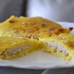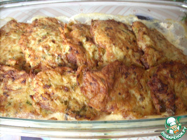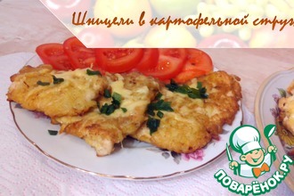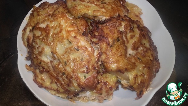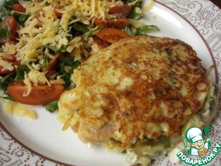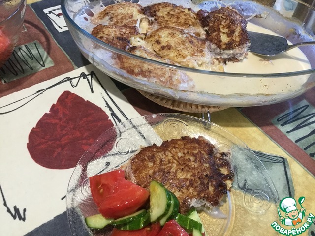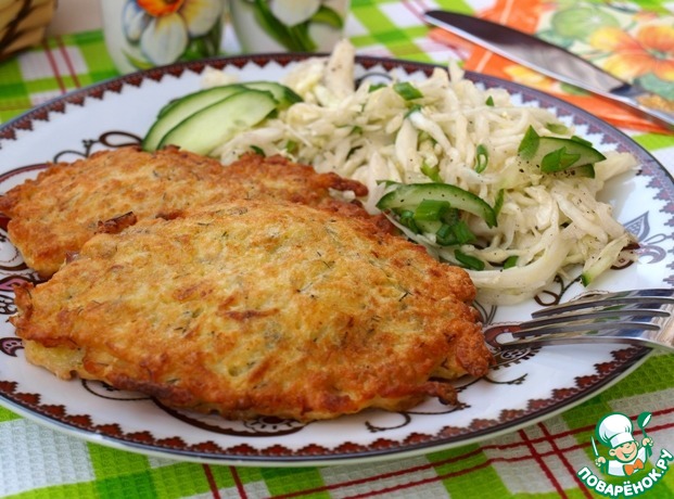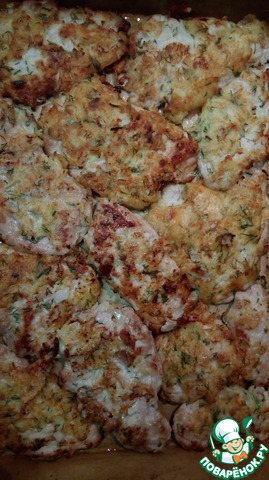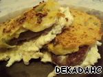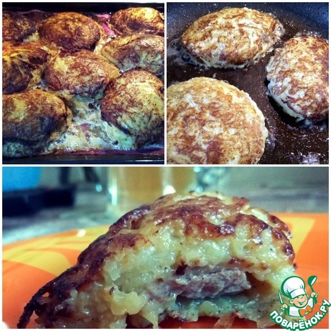 Единственное - когда протерла картошку на крупной терке, показалось что не похоже на то, что показано на фото, промолола ее еще немного в блендере. В следующий раз сотру просто на мелкой терке. Переворачивать отбивные оказалось той еще задачей, но приспособилась (сначала пару минут жарила на большом огне, потом убавляла и давала хорошо прожариться на среднем).