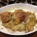 Мясо нарезать на отбивные и отбить их ( я кладу куски в пакет - нет брызг). Приготовим "шубку" для наших отбивных: на крупной терке натираем сырой картофель, мелко режем лук, зелень, натертый или измельченный в чесночнице чесночок, все перемешиваем, солим, перчим, добавляем яйца, майонез или сметану (2 ст. л.) и муку. Все вымешиваем.