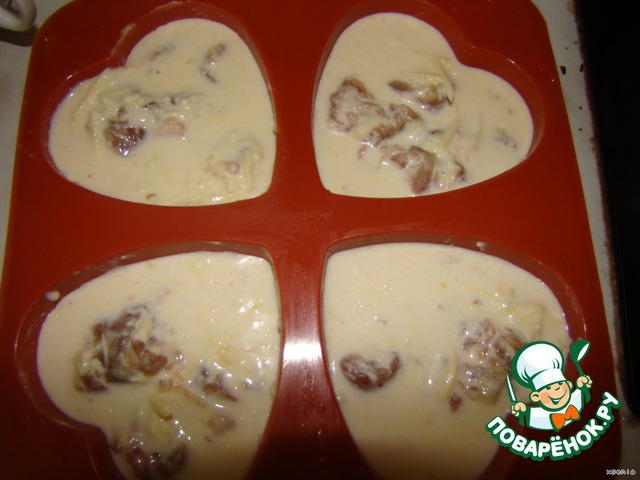 • И разливаем по формочкам. Ставим в духовку Выпекаем в разогретой духовке 15-20 минут при температуре 220. (Зависит от размером формочек). Формочки предварительно смажьте растопленным сливочным маслом