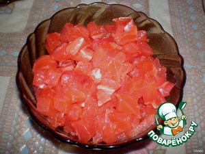 Рыбку порезать нмаленькими кусочками.