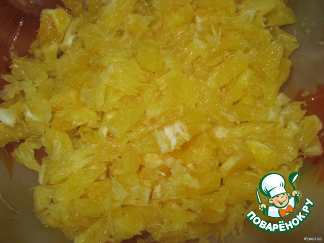Апельсин очистить и мелко нарезать.