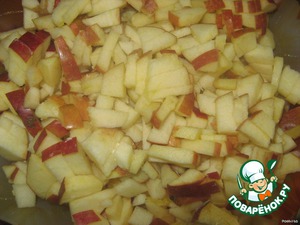 Яблоко освободить от семян,нарезать кубиками.