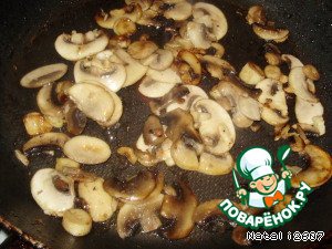 Шляпки шампиньона очистить от кожицы и нарезать тоненькими колечками.