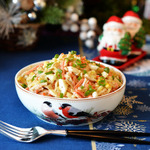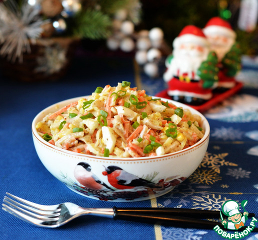 Выравниваем наш салат с помощью ножа.Украшаем петрушкой,укропом.Подаем сразу на стол. -