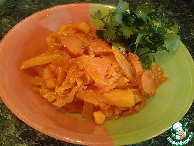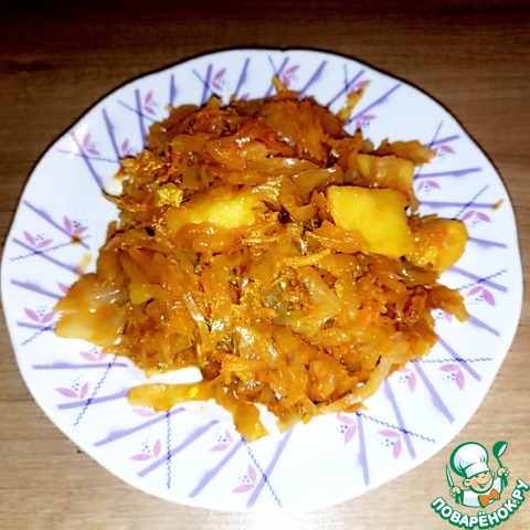 Добавить нашинкованную соломкой капусту и тушить до готовности. Посолить в конце приготовления. Если вам покажется, что вы налили мало масла его можно долить позже.