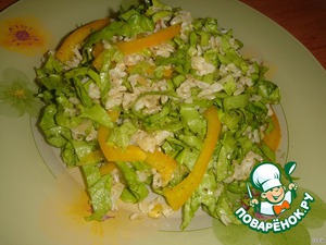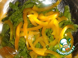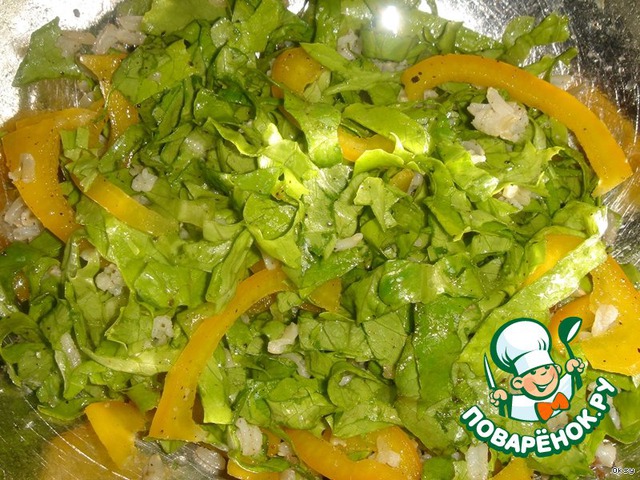 Сладкий перец и салат нарезать соломкой.
