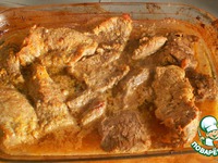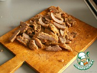 Кладем в маринад мясо, переворачиваем, чтобы пропиталось со всех сторон. Оставляем мариноваться на полчаса, можно и подольше. У меня за час хорошо замариновалось. |