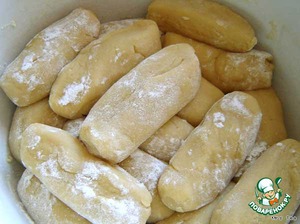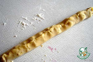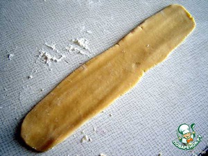 Каждое "бревнышко" раскатать в полоску шириной 5-6 см и длиной, равной длине будущего торта (у меня 30 см). -