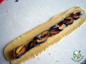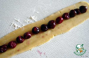 На середину полоски выложить начинку - вишню или другие ягоды и фрукты, соединить края и аккуратно защипать. Свежее тесто лепится очень легко, но в этот раз мне пришлось оставить его на несколько часов в холодильнике. Перестоявшее стало несколько жестковатым и края защипывались плохо, но это никак не отразилось на вкусе.