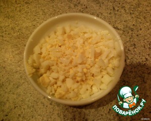 Луковицу почистить, нарезать кубиками и поджарить на сливочном масле