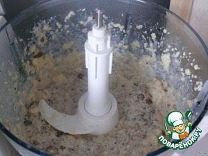 Сыр порубить ножом и грибы тоже. Я опять таки воспользовалась комбайном.