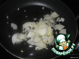 Для начинки, обжариваем нарезанный соломкой лук, на растительном масле.