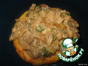 Теперь, на одну половинку кладём грибы с соусом. Накрываем второй половинкой.