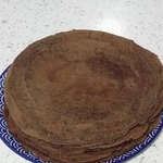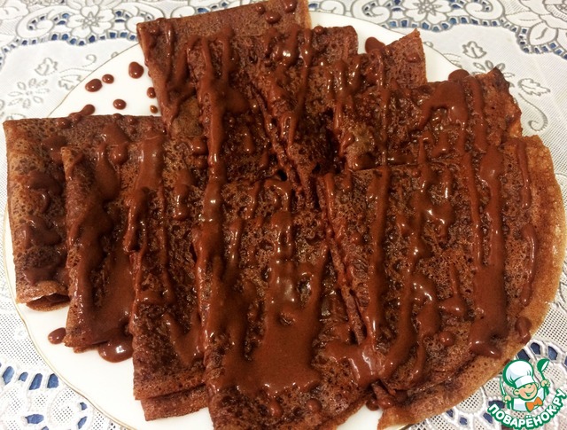 Из молока,яиц,сахара,муки и какао замесить тесто, хорошо размешать чтоб не было комочков,добавить немного растительного масла в тесто, чтоб легче было жарить и пожарить блины. Подавать со сметаной,вареньем.