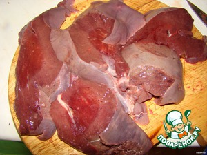Печень промоем, разрежем на куски толщиной 1-15 см