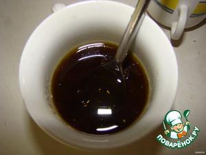 Пока варится делаем соус. Смешаем Масло+сахар+уксус+Со евый соус