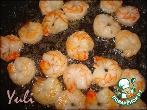 Вымыть и обсушить креветки.Разогреть растительное масло,поджарить в нем креветки и вынуть.