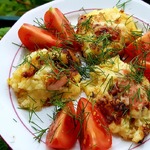 Картофельное пюре перемешать с яйцом, добавить щепотку соды и муку.