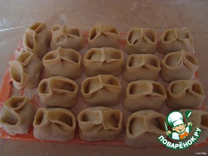 Замесить тесто как на пельмени, и на 10-15 мин. тесто положить в холодильник.