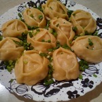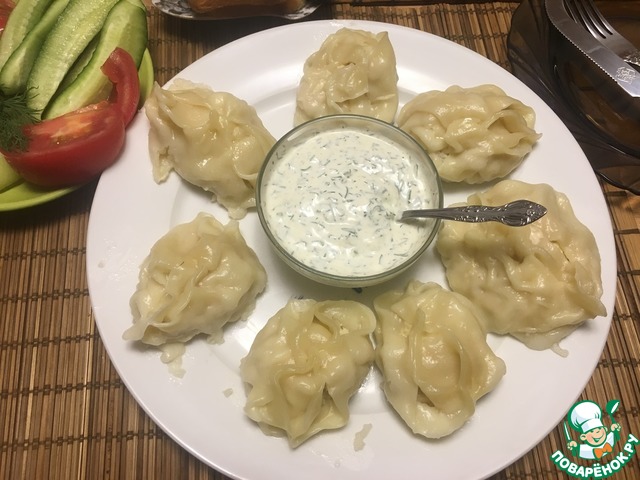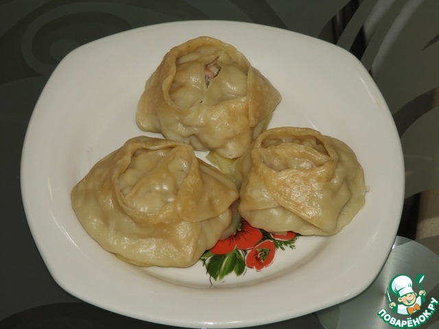 Вот что получается в итоге. Ставим манты в пароварку и варим мин. 30-40. Подают обычно в общем большом блюде. Не забудьте смазать сливочным маслом и посыпать зеленью.