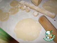 Каждую из частей очень тонко раскатываем (помогайте мукой). В диаметре должно быть примерно 15 см. |