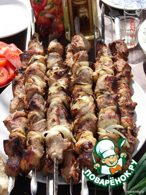 Нарезайте большими кусками, жарьте на раскаленный углях, собирайте большую компанию, тащите на природу , согревайте водкой, закусывайте овощами и наслаждайтесь вкусом шашлыков.