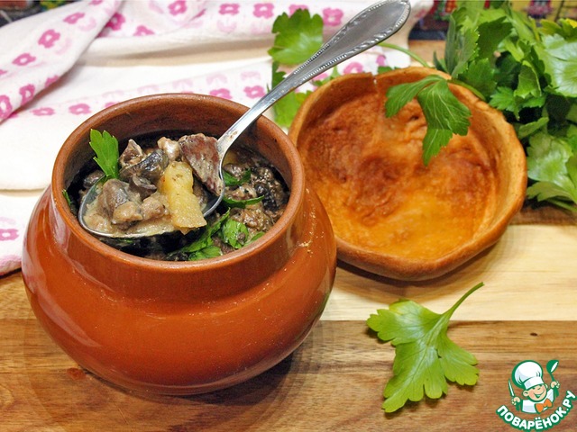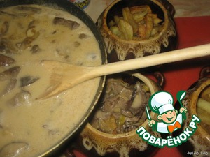 Рецепт «Картофель с печенью и грибами в горшочках»:
