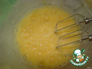 Затем вводим яичную смесь в сливки, добавляем частями муку.