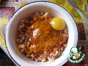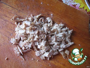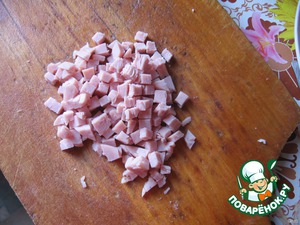 У меня было всего по чуть-чуть. ветчину нарезаем мелкими кубиками.
