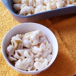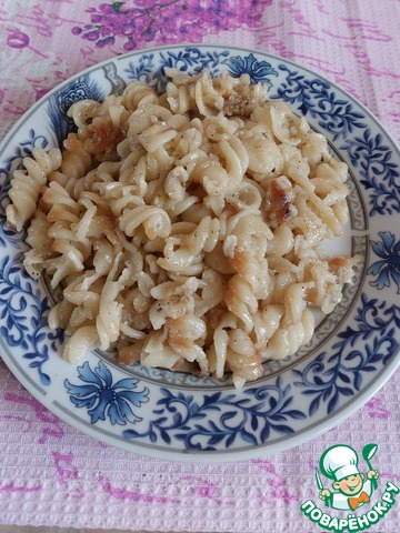 Смешать горячие макароны с йогуртово-чесночной заливкой и перчeным маслом.