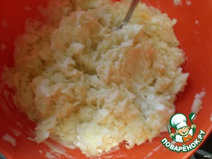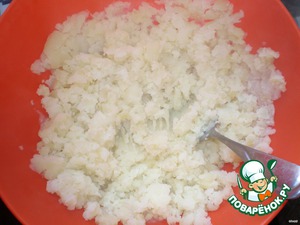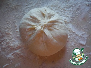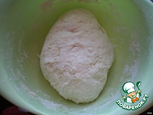 Лепим- отщипываем от теста небольшой комок, немного разминаем его в толстую лепешку