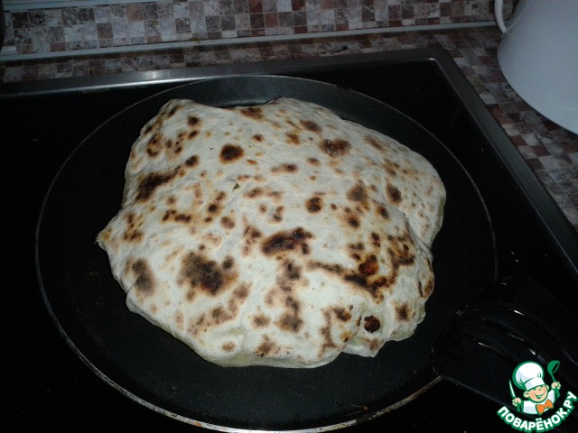 Каждую лепешку жарить на сухой сковороде, с двух сторон.