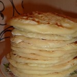 Мой рецепт, по которму делаю, от близкой-подружки-балкарки. Даже мастер-класс у нее проходила. Тесто делает очень мягкое - мука/вода/соль. Начинка - брынза с отварной картошкой, прокрученные на мясорубке. Можно отварить в мундире. Выкатывать ооочень тонко.