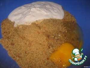Смешать печенье, йогурт и яйцо до получения однородной массы.