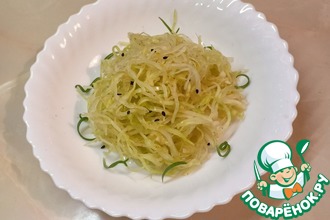 Трем сыр, перемешиваем с давленным чесноком - 2 слой