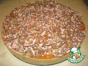Выложить начинку на нижний корж, дать застыть