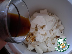 Взбить 5 желтков, творожную массу, сахар, кофе, ванилин