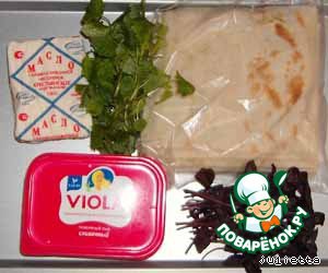 Ингредиенты для «Лаваш со сливочным сыром, зеленью и омлетом»: