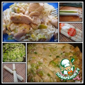 Очень нежные, чуть острые кусочки курицы с шампиньонами, горчицей, пореем и сливками - это изумительно просто и вкусно! Готовила эту курочку два дня подряд - понравилась нам безумно!