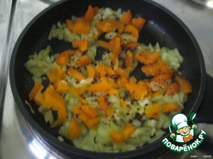 Добавить сладкий перец, перец чили обжарить еще 5 мин.,