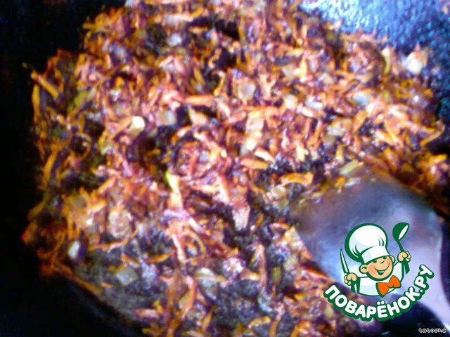 Когда овощи поджарятся (у меня аж слишком поджарились, немного прозевала), добавляем томатный сок, сюда же ломтики лимончика, да ещё и посолить, поперчить и положить лаврушечку!