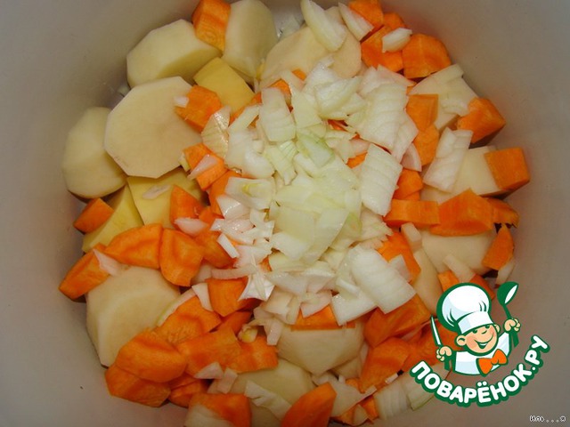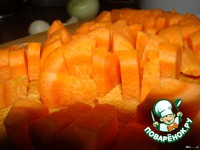 Морковь нарезаем большими кубиками добавляем к картошке.