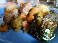 Основные ингредиенты этого блюда картофель и мясо, остальные же можете добавлять по вкусу. Например, когда я делал это блюдо впервые, у меня имелись оливки, естественно они очутились там же в рукаве. Аромат и кисловатый привкус оливок хорошо гармонировал с остальными ингредиентами. Фантазируйте, и у Вас получится оригинальное блюдо, которое может стать традиционным в Вашей семье!