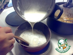 Как только расплавленный сахар станет светло-кoричневым, уменьшите огонь и очень медленно влейте в него горячее молоко. Сахар сразу же кристаллизуется