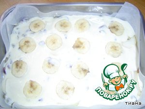Дальше слой смеси и украшаем бананом. -