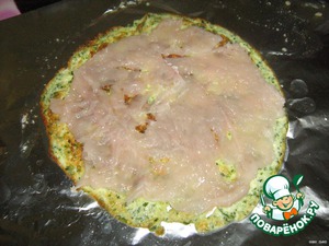 Блинчик выкладывайте на фольгу, смазанную маслом (если запекать будете в духовом шкафу)или на плёнку (если в микроволновой печи)сверху отбитый кусочек филе посыпайте специями на ваш вкус. Сворачиваем в рулетик и запекаем .