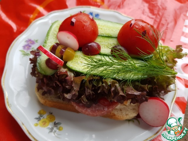 Такой бутерброд сделать не очень сложно. Главное, чтобы у Вас было хорошее настроение.