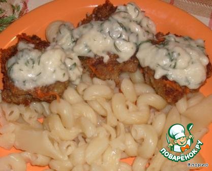 Далее - варианты: либо котлетки заливаем соусом и сразу подаем, либо заливаем их соусом и отправляем немного потушиться в микроволновку (под крышкой), на 3-4 минутки.