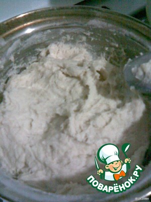Белки взбить в пену и вместе с оставшейся мукой добавить к опаре. Замесить тесто. Оно получается не очень крутое, но главное, чтоб не липло к рукам.