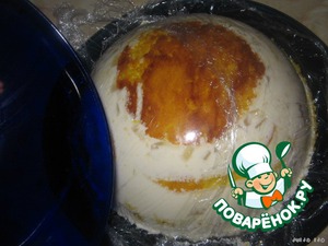 Потом сверху кладём блюдо, на котором торт будем подавать.